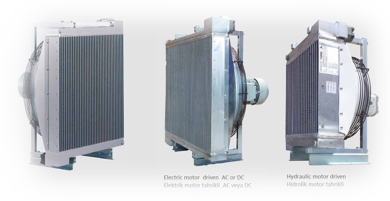 * sabit ve hareketli iş makinalarının soğutulması için hava/yağ eşanjörleri